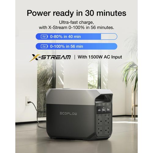 Providing 1800W AC output, the Delta 3 can run a wide range of common household and office appliances including refrigerators, fans, laptops, routers, televisions, lights, and small kitchen devices. X Boost technology offers additional flexibility by supporting higher wattage loads when needed. The fast AC charging capability ensures the unit reaches full capacity in about 70 to 80 minutes, making it practical during unexpected outages or when preparing for travel or outdoor work.